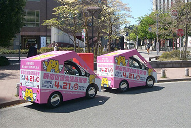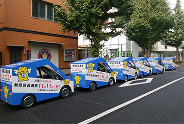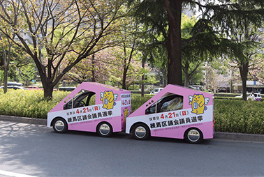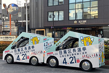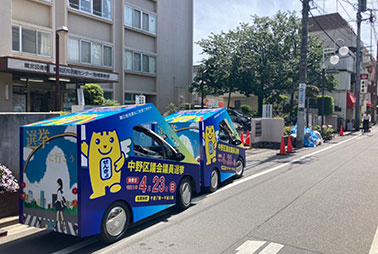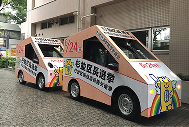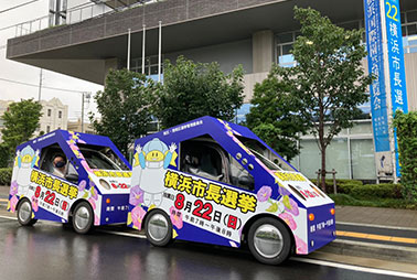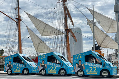 2023年の統一地方選挙では多くの自治体様からお声がけいただき走行しました。こちらは横浜市のご紹介になります。デコレンタの地元ということもあり多くの老若男女の方からお声がけいただきました。写真撮影されたりSNSへ載せてもよいかと言った声多く、WEBへの2次拡散が盛んにありました。