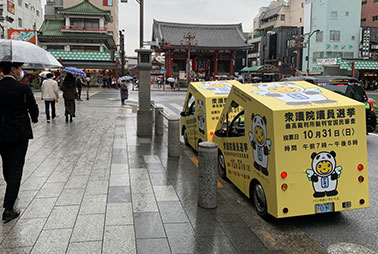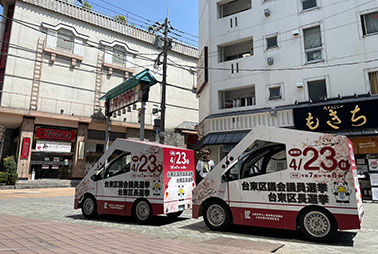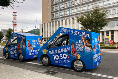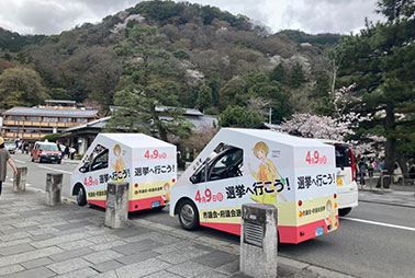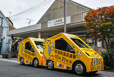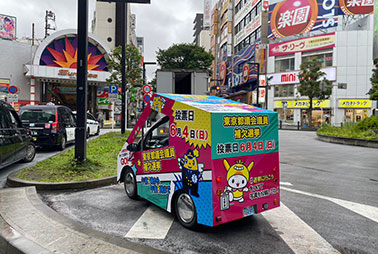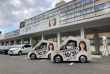 県内を9日間かけて各市町村を移動しながら周遊する走行となりました。人通りの多いエリアや期日前投票所に停車を繰り返し、初めて見るデコレンタに地元の皆さんが驚いた様子でお声掛けいただきました。記念撮影されたり、労いの言葉をいただくなど歓迎ムードに溢れた走行となりました。